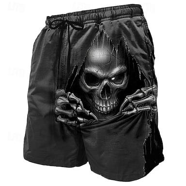 Herren Schädel Tod Kostüme Schwimmshorts Schwimmshorts Boardshorts mittlere Taille Dunkel Punk Gothik Stil Urlaub Streetwear seitliche Taschen Netzfutter elastischer Kordelzug Bund Designer Kleidung