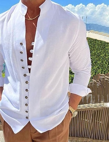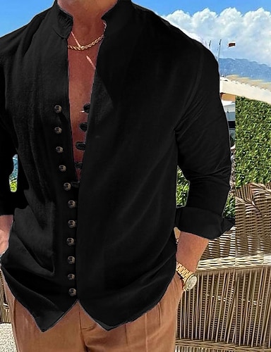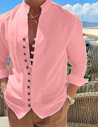 Herren-Poloshirts aus Leinen, lässig, klassisch, Kurzarm, schlicht, mit strukturierten Knöpfen, für Sommer und Frühling, normale Passform, in den Farben Seeblau, Schwarz, Weiß, Hellgrün, Rosa und Lila