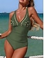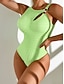 Damen Einteiler Badeanzug Sexy Cutout Unterdraht Monokini Bauchkontrolle Hohe Taille Slim Rückenfrei Urlaub Strandbekleidung Unifarbener Halterneck Ärmellose Badeanzüge
