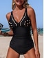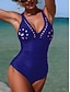 Damen Einteiler Badeanzug Sexy Cutout Monokini Bauchkontrolle Hohe Taille Slim Rückenfrei Urlaub Strandbekleidung Polka Dot Farbblock U-Ausschnitt Ärmellose Bademode