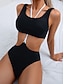 Womens Einteiler Badeanzug Monokini Hohe Ausschnitte Bauchkontrolle Hohe Taille Slim Rückenfrei Urlaub Strandbekleidung Einfarbig U-Hals Ärmellose Bademode