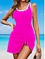 Damen Badeanzug Einteiler Monokini Badeanzugkleid Bademode Bauchkontrolle Hohe Taille Schlank Rückenfrei Urlaub Strandbekleidung Einfarbig Rundhals Ärmellos Badeanzüge