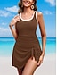 Damen Badeanzug Einteiler Monokini Badeanzugkleid Bademode Gerafft Bauchkontrolle Hohe Taille Schlank Rückenfrei Urlaub Strandbekleidung Einfarbig Rundhalsausschnitt Ärmellos Badeanzüge
