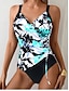 Damen Badeanzug Zweiteilig Monokini Bademode String-Einteiler Bauchkontrolle Hohe Taille Schlank Rückenfrei Urlaub Strandbekleidung Blumen Rundhalsausschnitt Ärmellos Badeanzüge