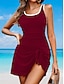 Damen Badeanzug Einteiler Monokini Badeanzugkleid Bademode Bauchkontrolle Hohe Taille Schlank Rückenfrei Urlaub Strandbekleidung Einfarbig Rundhalsausschnitt Ärmellos Badeanzüge