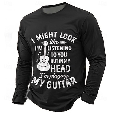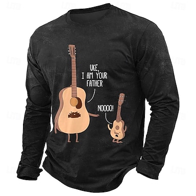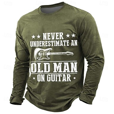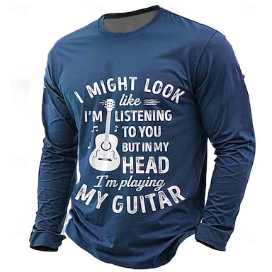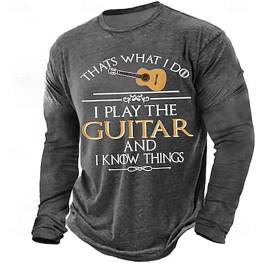 Herren Gitarre Lustiger Slang T Shirt Langarm T-Shirt 3D-Druck Rundhalsausschnitt Hemd Mode Täglich Basic Lässig Täglich Straße Blau Schwarz Grün Sommer Frühling Bekleidung S M L XL XXL XXXL