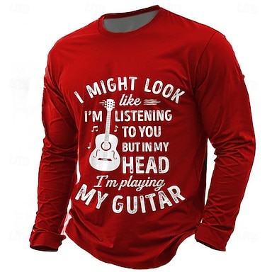 Herren Gitarre Lustiger Slang T Shirt Langarm T-Shirt 3D-Druck Rundhalsausschnitt Hemd Mode Täglich Basic Lässig Täglich Straße Blau Schwarz Rote Sommer Frühling Bekleidung S M L XL XXL XXXL