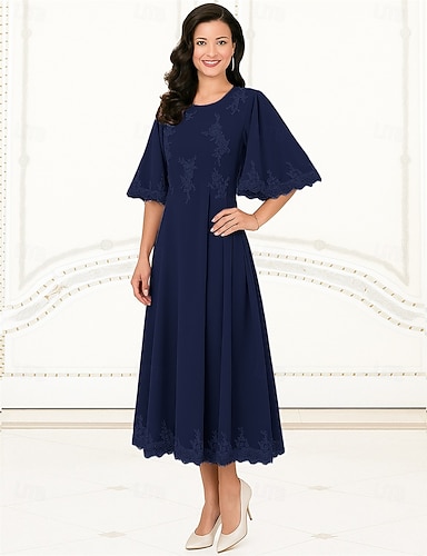 Mutter der Braut Kleid Elegantes Kleid Crew-Ausschnitt Teekleid Spitze Kurzarm mit Spitze