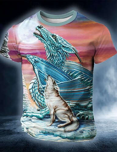 Ed Beard Herren Drache 3D T-Shirt Kurzarm T-Shirt 3D Druck Rundhalsausschnitt Shirt Gothic Horror Party Straßen Freizeit Rot Sommer Frühling Alle Jahreszeiten Kleidung Apparel