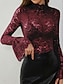 Damen Oberteil mit Spitzenspleiß Bluse Spitze Patchwork Geometrisch Elegant Stilvoll Modern Langarm Hoher Ausschnitt Normale Oberteile Täglich Ferien Ausgehen Schwarz Weiß Rosa Rote Sommer Frühling