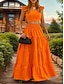 Damen Rock-Sets Bolero Kunstbaumwollleinen Ärmellos V Ausschnitt Einfach Gerafft Patchwork Mode Streetwear Lässig Täglich Outdoor Orange Sommer Normale Passform