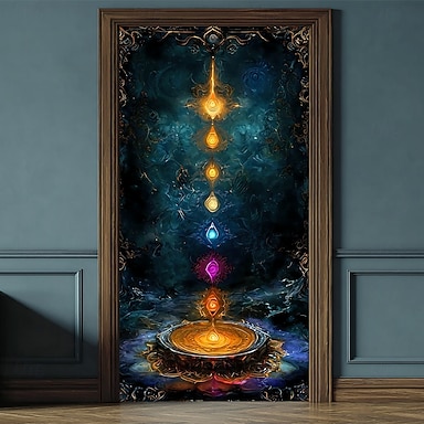 Wandteppich Türabdeckung Outdoor Banner sieben Chakra Yoga Meditation ästhetische mystische Schlafzimmer Wohnzimmer Haustür Dekorationen Wand Tür Hintergrund