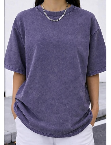 Damen Übergroße T Shirt 100% Baumwolle Vintage-gewaschene Tops Einfarbig Vintage Stilvoll Lässig Kurzarm Rundhalsausschnitt Rundhals Normale Oberteile Täglich Ausgehen Kastanienbraun Schwarz