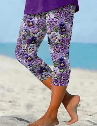 Damen Leggings Capri Pants Hohe Elastizität Urlaub Mode Hawaiianisch Knöchellang Mittlere Taille Blumen Grafik Druck Thermisch Warm Atmungsaktiv Weich Urlaub Casual Täglich