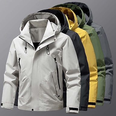 Herren Sport Jacke Wanderjacke Parka Windjacke Sport im Freien Lässig Wasserdicht Windjacke Vollreißverschluss 3 in 1 Frühling Herbst Winter Einfarbig Aktiv City Mit Kapuze Kurz Schwarz Weiß Gelb