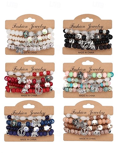 Weihnachtliches Armband-Set im Boho-Stil mit Acrylperlen – mehrfarbiges Design mit Anhängern, perfektes Weihnachtsgeschenk für Frauen, festliches und stilvolles Accessoire für Freizeit und Partys.