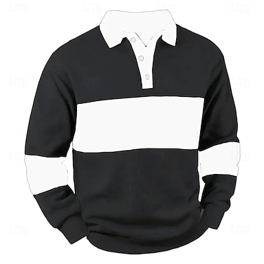 Herren Gestreift Pullover Rugby-Poloshirt Rugby-Poloshirts Langarm Polo-Shirts Kragen Vintage Lässig Outdoor Straße Alltagskleidung 3D-Druck Knöpfe Frühling Herbst Winter Blau Kastanienbraun Schwarz