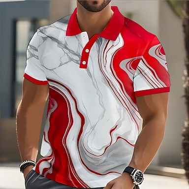 Herren Marmor Golf Sport-Poloshirts Kurzarm Polo-Shirts Hemden mit Kragen Lässig Athleisure Knöpfe Frühling & Sommer Blau Purpur Grün