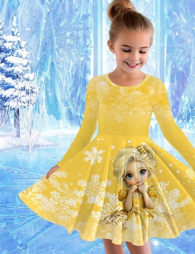 Mädchen 3D Graphic Schneeflocke Prinzessin Weihnachtspyjamas Pyjama-Sets Pyjama-Sets mit T-Shirt und Hose Langarm 3D-Druck Herbst Winter Aktiv Basic kinderkleidung 4 Jahre + Rundhalsausschnitt Heim