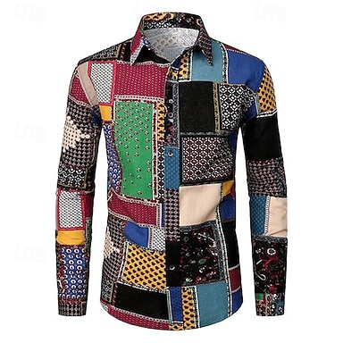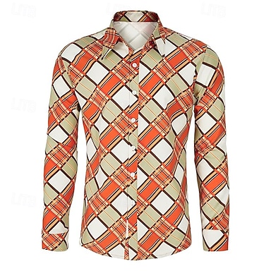 Retro Vintage 1970er Hemd Disco Geometrisch Psychedelisch Kostüm Herren Halloween Karneval Musikfestival Pride Parade Erwachsene Hemd