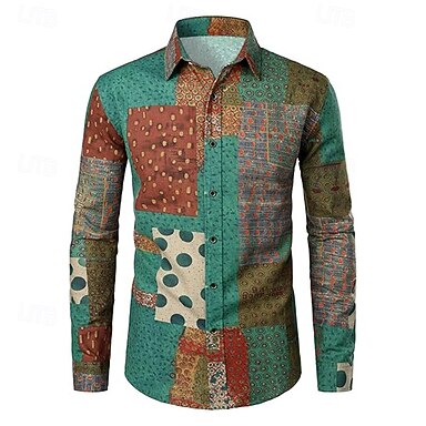 Herren Geometrisches Muster Ethnisch Indische Kultur Hemd Knopfhemd Stehkragenhemd Langarm Vintage-Retro Täglich Outdoor Urlaub Frühling Herbst Mandarinkragen Stehkragen 3D-Druck Leinenähnliches Hemd