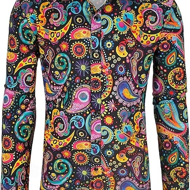 Retro Vintage 1970er Hemd Aloha-Hemd Hippie Paisley-Muster Kostüm Herren Maskerade Party Alltagskleidung Pride Parade Erwachsene Hemd