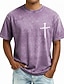 Unisex-Bibel Kreuz T-Shirt Kurzarm T-Shirt Acid Wash Rundhalshemd Vintage Retro Casual Strand Reise Blau Lila Grau Sommer Frühling Kleidung Mode