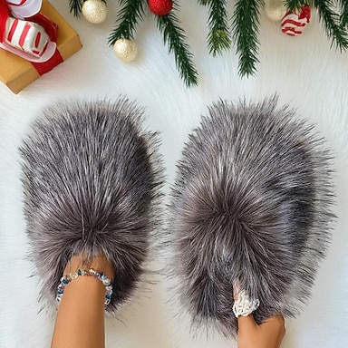 Flauschige Hausschuhe aus Kunstfell für Damen – gemütliche Hausschuhe für den Winter zu Hause und zum Entspannen
