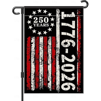 Vintage-Gartenbanner mit amerikanischer Flagge zum 250. Jahrestag der USA (1776–2026) im Used-Look in Rot, Weiß und Schwarz für die Außendekoration