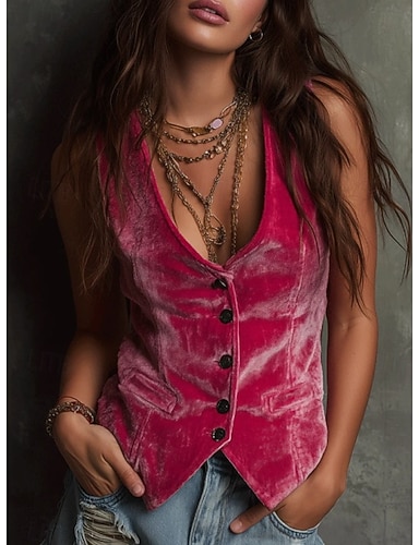 Damen Samt Einfarbig Einfach Bohemien Vintage Ärmellos V Ausschnitt Schwarz Rosa Leicht Braun Sommer Frühling Herbst Winter