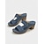 Blaue offene Pantoletten für Damen mit Blockabsatz und goldener Schnalle – stylische Sommerschuhe für legere Anlässe