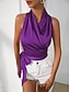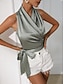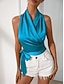 Damen Satin-Tanktop T Shirt T-Shirt Wickeln Einfach Elegant Mode Stilvoll Ärmellos Neckholder Crop Tops Lässig Täglich Ausgehen Blau Schwarz Purpur Grün Sommer Frühling