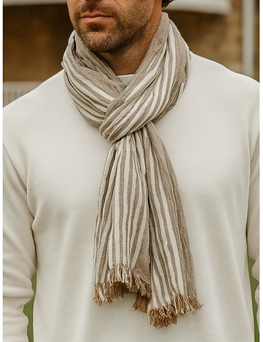 Gestreifter Baumwollschal für Herren – leichtes, weiches Tuch mit Fransen für Herbst und Winter, lässiger Schal im Vintage-Stil für Reisen, den Alltag und Outdoor-Aktivitäten