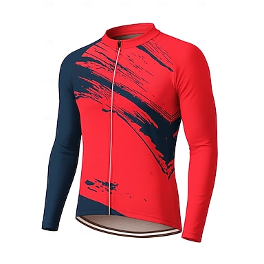 Herren Radtrikot Downhill-Trikot Geometrisch Abstrakt Kontrastfarbe Langarm Fahhrad T-Shirt Trikot Kompressionskleidung mit 3 Gesäßtaschen Mountainbike MTB Straßenradsport UV-Sonnenschutz