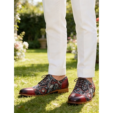 Herren Klassisch Lässig Leder Italienisches Vollnarbenleder Rutschfest Schnürung Wein Blau Sommer Frühling