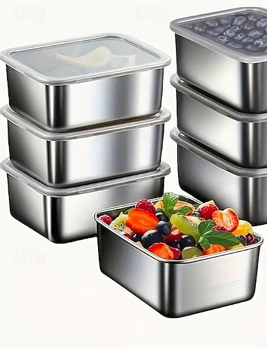 3-teiliges Set mit Frischhaltedosen aus Edelstahl, BPA-frei, wiederverwendbar, leicht zu reinigen, stapelbares Design für Obst, Fleisch, Gemüse, Kühlschrank und Vorratskammer