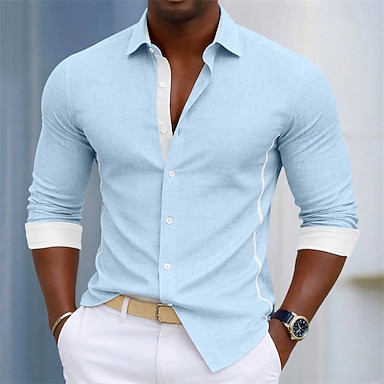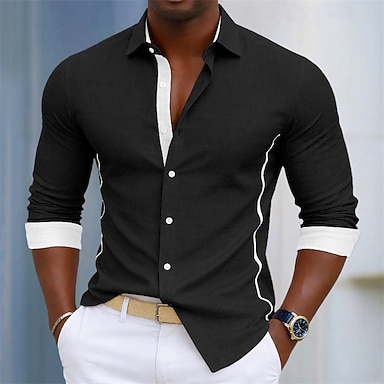 Herren Hemd Oberhemd Bügelfreies Hemd Knopfhemd Farbblock Hochzeit Täglich Hellblau Schwarz Weiß Hellgrün Langarm Umlegekragen Frühling & Herbst Bekleidung Patchwork