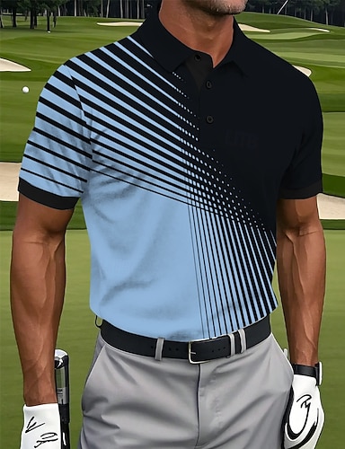 Herren Geometrisch Golf Polo Sport-Poloshirts Kurzarm Polo-Shirts Sportbekleidung Athleisure Alltagskleidung 3D-Druck Knöpfe Frühling Herbst Weiß Braun Grün