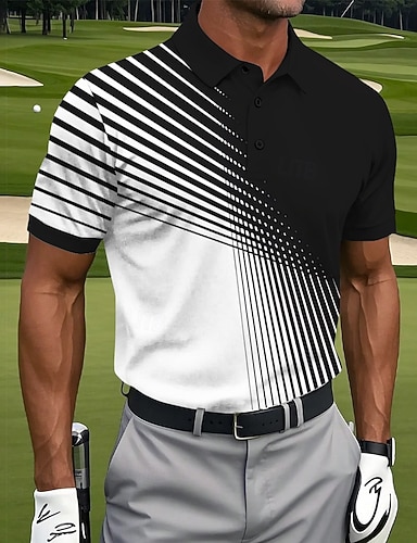 Herren Golf Spritztinte Polo Langarm Polo-Shirts Revers Sportbekleidung Lässig Athleisure Alltagskleidung 3D-Druck Knöpfe Frühling Herbst Winter Schwarz Weiß