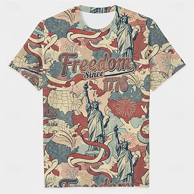 Patriotisch T-Shirt Grafisches T-Stück Text USA Freiheitsstatue Retro Vintage Lässig Patriotisch T-Shirt Ärmel 1776–2026 für Unisex Erwachsene 3D-Druck für Unabhängigkeitstag / 4. Juli 4. Juli Party