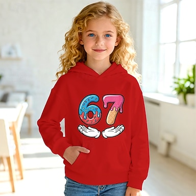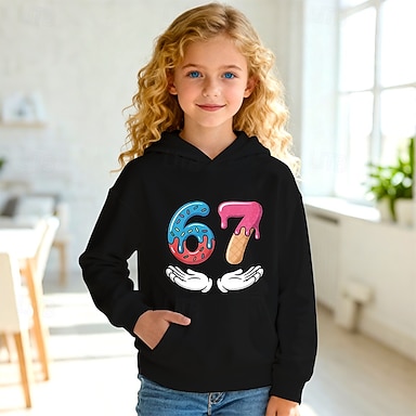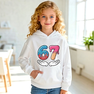 Baumwolle Kinder Mädchen Schwarz Weiß Grafik Lustiger Slang 67 T-Shirt Rundhalsausschnitt Kurzarm Urlaub Sport & Outdoor Alltagskleidung Aktiv Designer Lässig Drucken Sommer