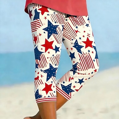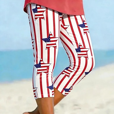 Unabhängigkeitstag Patriotische Damen Capri-Hosen Leggings Urlaub Hawaiian Stilvolle Capris Mittlere TailleHosenGrafik Abstrakt Komfort Elastisch Urlaub Formal Straße Weiß Rot Slim Fit