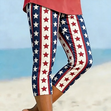 Unabhängigkeitstag Patriotische Damen Leggings Urlaub Vintage Mode Capri Hohe Taille Hose Grafik Flaggen Druck Atmungsaktiv Weich Dehnbar Formal Urlaub Büro Schwarz Slim Fit
