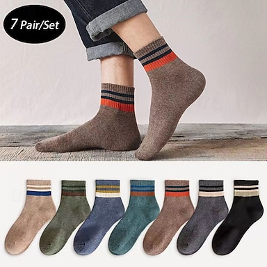 Herren 7 Paare Socken Laufsocken Freizeitsocken Blau Schwarz Farbe Gestreift Outdoor Urlaub Alltagskleidung Mittel Frühling Herbst Mode Streetwear