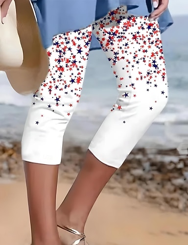 Unabhängigkeitstag patriotisches Shirt Damen Capri-Hosen Leggings Mode Streetwear Basic Knöchellange High-Waist-Hosen Grafik Stern gestreiftes Druck atmungsaktiv weich dehnbar