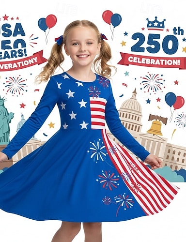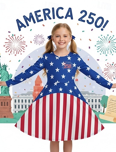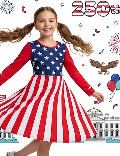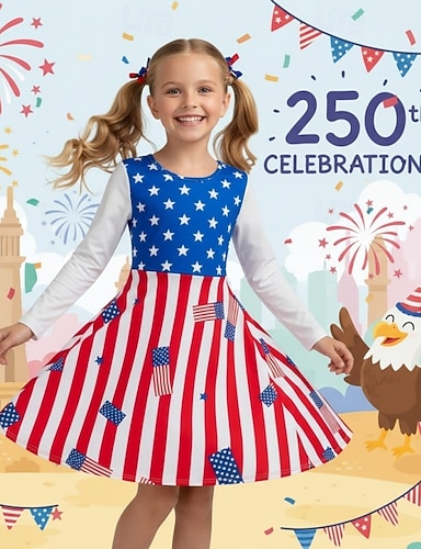 Mädchen' 3D Grafik Gestreift Sterne Kleid Langarm 3D-Druck Frühling Herbst Täglich Urlaub Party Lässig Prinzessin Schön Kinder 4-12 Jahre Freizeitkleid A Linie Kleid Knielang Normale Passform