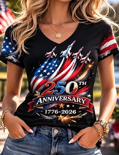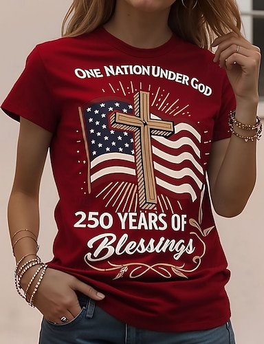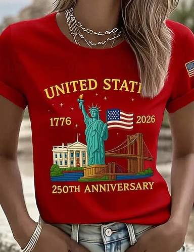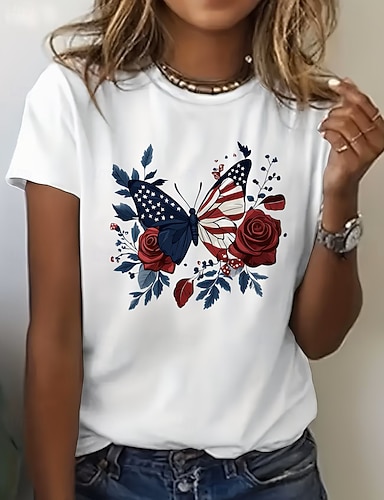 Amerikanischer Unabhängigkeitstag Damen T Shirt Druck Grafik Stern Vintage Stilvoll Klassisch Kurzarm Rundhalsausschnitt Normale Oberteile Täglich Rote Purpur Orange Grün Sommer Frühling