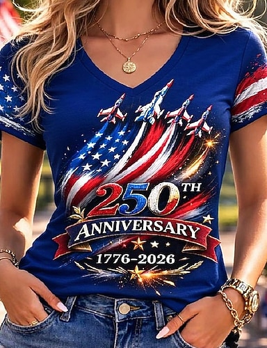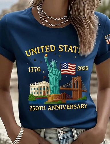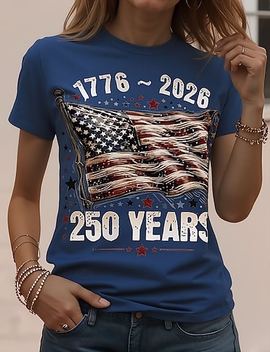 Amerikanischer Unabhängigkeitstag Damen T Shirt T-Shirt Druck Grafik Stern Mode Stilvoll Klassisch Kurzarm Ein-Schulter Normale Oberteile Täglich Ausgehen Wochenende Blau Rote Sommer Frühling