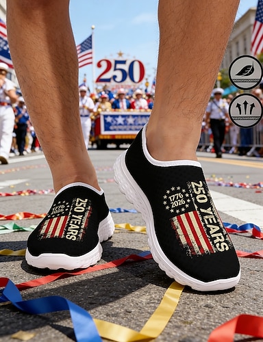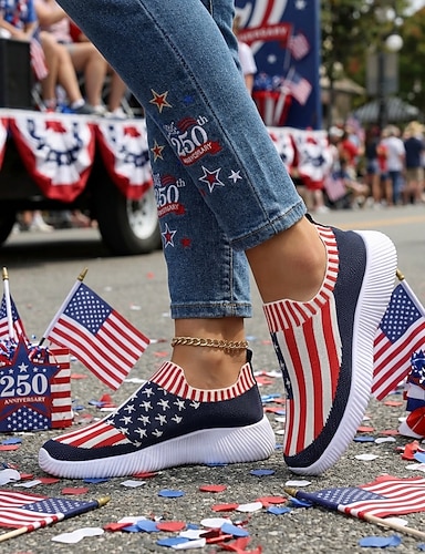 Schwarze/rote Damensandalen zum 250-jährigen Jubiläum der USA – bequeme, patriotische Riemchensandalen mit Sternen- und Streifenmuster für Strand, Paraden und Feierlichkeiten zum 4. Juli.