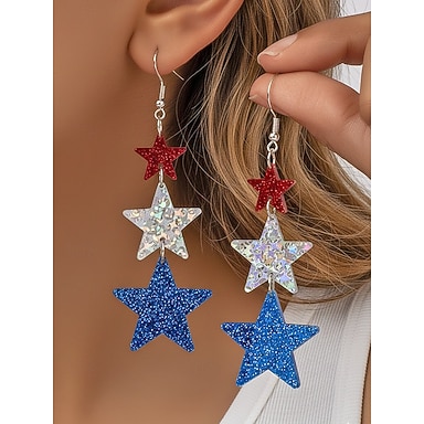 250. Jahrestag der Vereinigten Staaten Frauen Drop-Ohrringe Hängende Ohrringe Acryl Aktive Vintage täglicher Stern Pentagramm